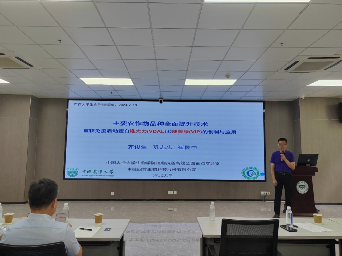 Professor Gong Zhizhong gave an academic report entitled "Comprehensive Enhancement Technology of Major crop varieties - Research and Development and production application of plant immune priming proteins Weidai and Weipu Green". VDAL protein was isolated from Dalichocladium cotton and VIP protein interacting with VDAL was obtained from cotton. These two types of proteins can be mixed with all pesticides, fertilizers, etc. Through low concentration treatment of crop seeds or spraying leaves, it has outstanding effects on resistance to low temperature, drought and disease resistance, and can steadily improve crop yield and the quality of melons and fruits, ensuring increased production in good years and stable yield in bad years. On the basis of existing management, it is expected to upgrade all current major food varieties (increase production by more than 5%). Professor Gong Zhizhong is confident about the application prospect of plant immune priming protein, which is expected to contribute to the new round of national grain production capacity improvement and the safe production of melons, fruits and vegetables.