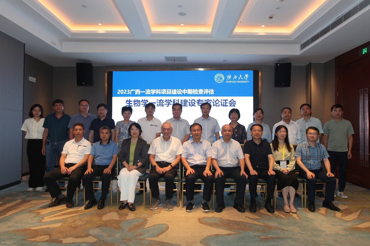 学科负责人何正国院长汇报了生物学广西一流学科中期进展情况。专家组经过质询和热烈讨论,一致认为生物学学科全面完成了新一轮广西一流学科项目建设中期任务,建设成效显著、特色鲜明,同意通过中期评估。建议自治区和学校加大支持力度,进一步加强人才和学科特区建设,加强师资队伍规模、青年人才成长、科学研究和教学场地等方面的建设和投入,力争在后续广西生物学一流学科建设取得更大突破。