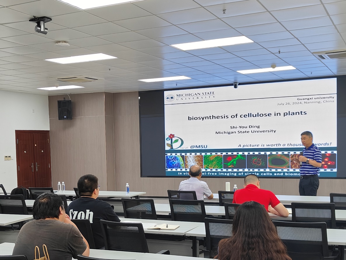 7月26日,beat365在线唯一官网在国家重点实验室107多功能会议室成功主办了“海外名师大讲堂”。美国密歇根州立大学植物生理系丁士友教授应邀作题为Biosynthesis of cellulose in plants的学术报告。此次报告由beat365在线唯一官网副院长赵帅教授主持。