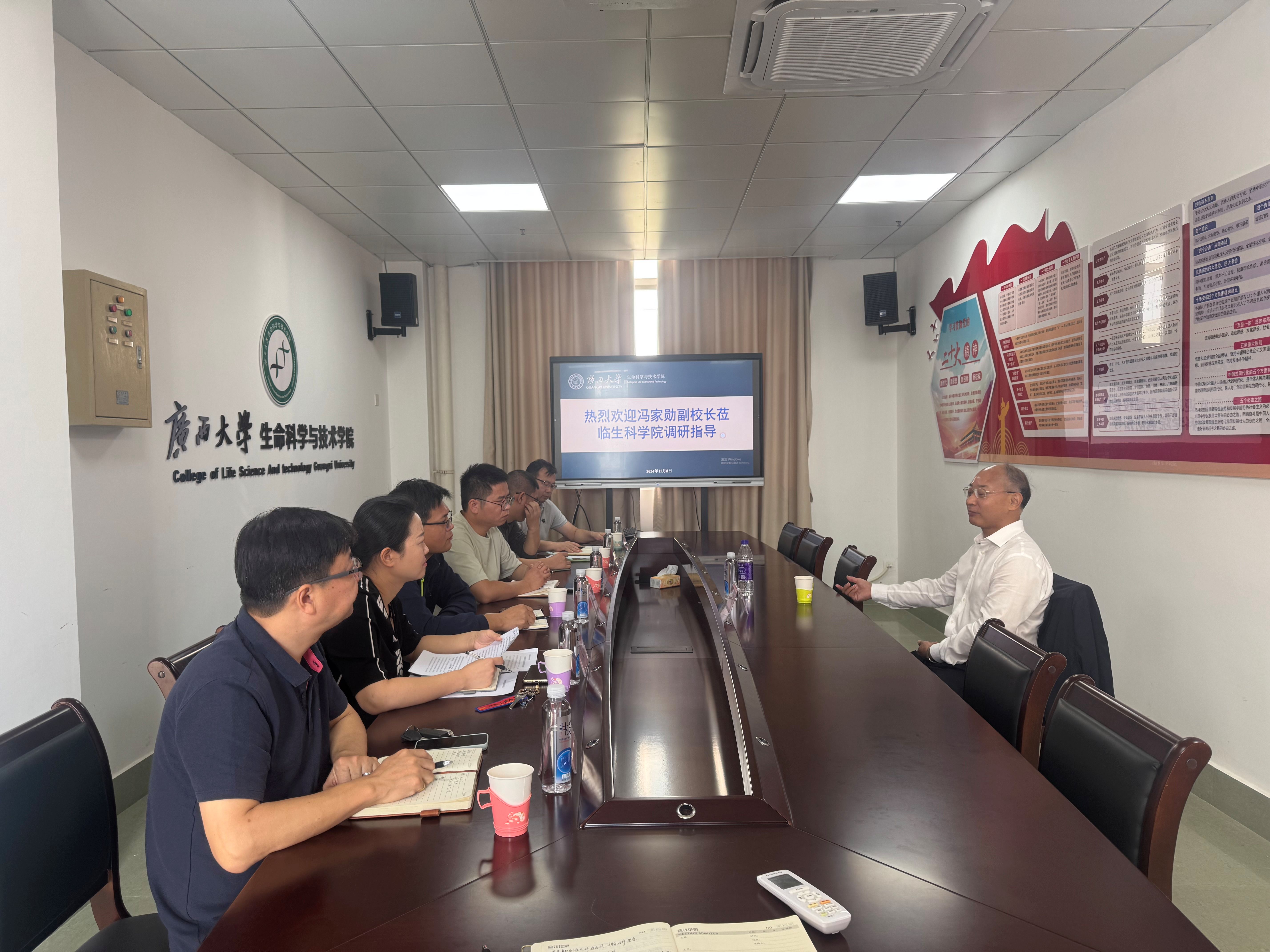 冯副校长认真听取了院领导班子的汇报后,充分肯定了学院工作成绩并同班子成员就学院存在的发展问题进行了深入的研讨。他指出,生科学院要突破目前的发展瓶颈,一是要认真学习贯彻党的二十届三中全会精神,紧密围绕国家重大战略需求和学校“双一流”建设发展,锐意改革创新,再创学院辉煌。二是要认真规划新形势下学院发展的定位问题,明确发展方向,锚定发展目标,凸显生科区域特色。三是加强有组织科研,促进标志性成果的产出。四是要培引并重,打造高水平师资队伍。五是要打造品牌,注重文化建设,营造干事创业的浓厚氛围。
