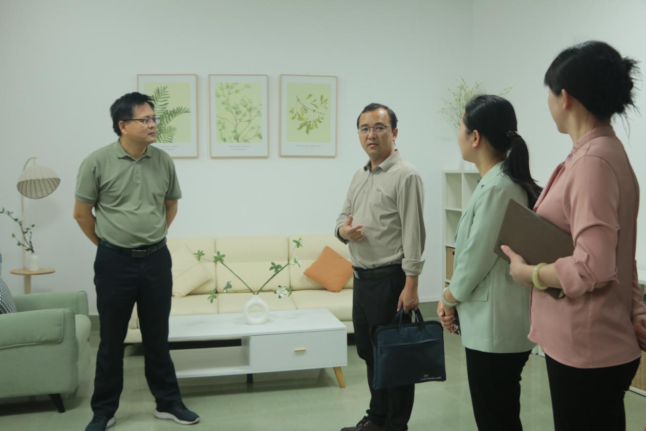 揭牌仪式后,谢能重一行实地参观了工作站,对站内谈心谈话区、心理阅览区、团体活动区等功能布局与设施配置给予肯定,并就工作站日常运行、队伍建设、活动开展等进行现场指导。