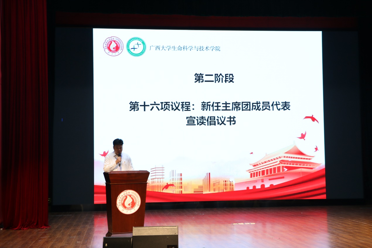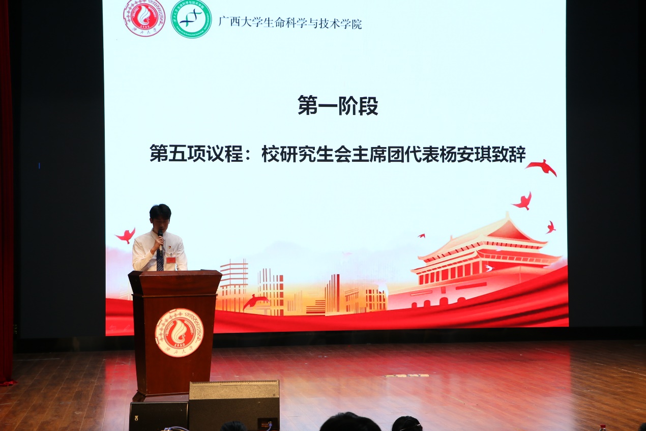 10月23日,我院第二十次研究生代表大会在大学生活动中心一楼小剧场召开。我院党委书记莫柏林老师、党委副书记曾海艳老师、团委书记周嫱老师、团委副书记马奕老师、学工组俸雪老师、广西大学校研究生会代表,兄弟学院研究生会代表以及我院各班级代表出席本次会议。大会由学工组俸雪老师主持。