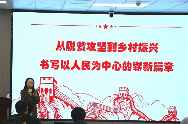 宣讲会上,两位宣讲员紧扣党的二十大报告中提出的“全面推进乡村振兴,坚持农业农村优先发展,巩固拓展脱贫攻坚成果”的重要要求,以广西环江毛南族自治县为例,讲述了党和政府如何不计成本,加大基础设施建设投入,助力其实现可持续脱贫的故事。还以广西全州县毛竹村为例,讲述了在党的乡村振兴战略实施下,该村一抓党建;二抓人才;三抓技术;四抓统筹,逐步摘下“贫帽”,走向致富之路的故事。