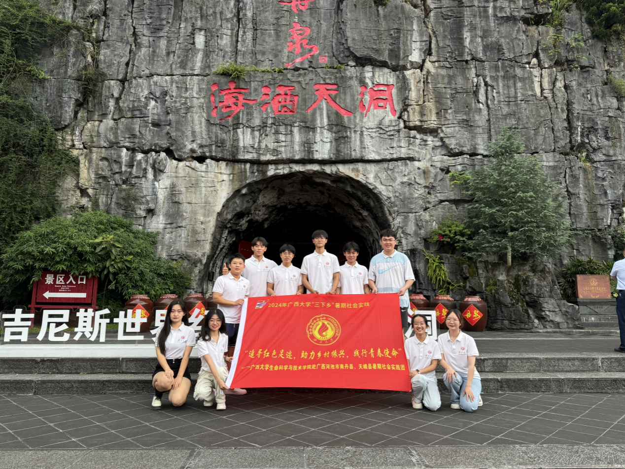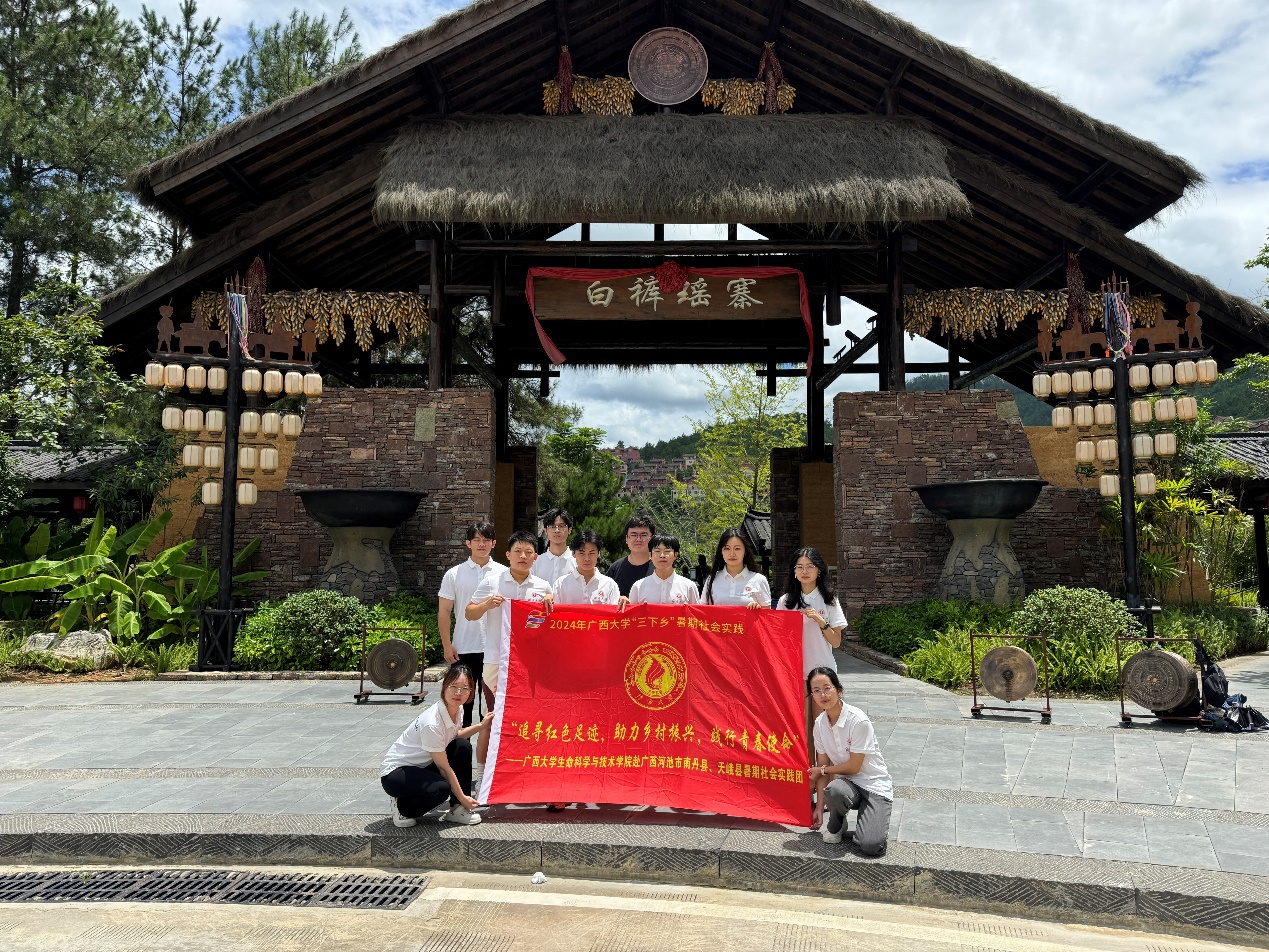 为深入学习宣传贯彻党的二十大精神和2024年习近平总书记五四青年节对全国广大青年寄语精神,充分发挥社会实践在高校思想政治引领工作中的重要作用,2024年7月17日-7月20日,beat365在线唯一官网暑期社会实践团赴河池市南丹县、天峨县围绕产业调研、访企拓岗、铸牢中华民族共同体意识、寻访新时代伟大成就、追溯红色足迹等主题开展了为期4天的暑期社会实践活动。此次暑期社会实践团由beat365在线唯一官网党委副书记、纪委书记覃文月带队,副院长赵帅、生物技术系副主任黄罗冬、团委书记马奕及10名学生代表参加此次活动。