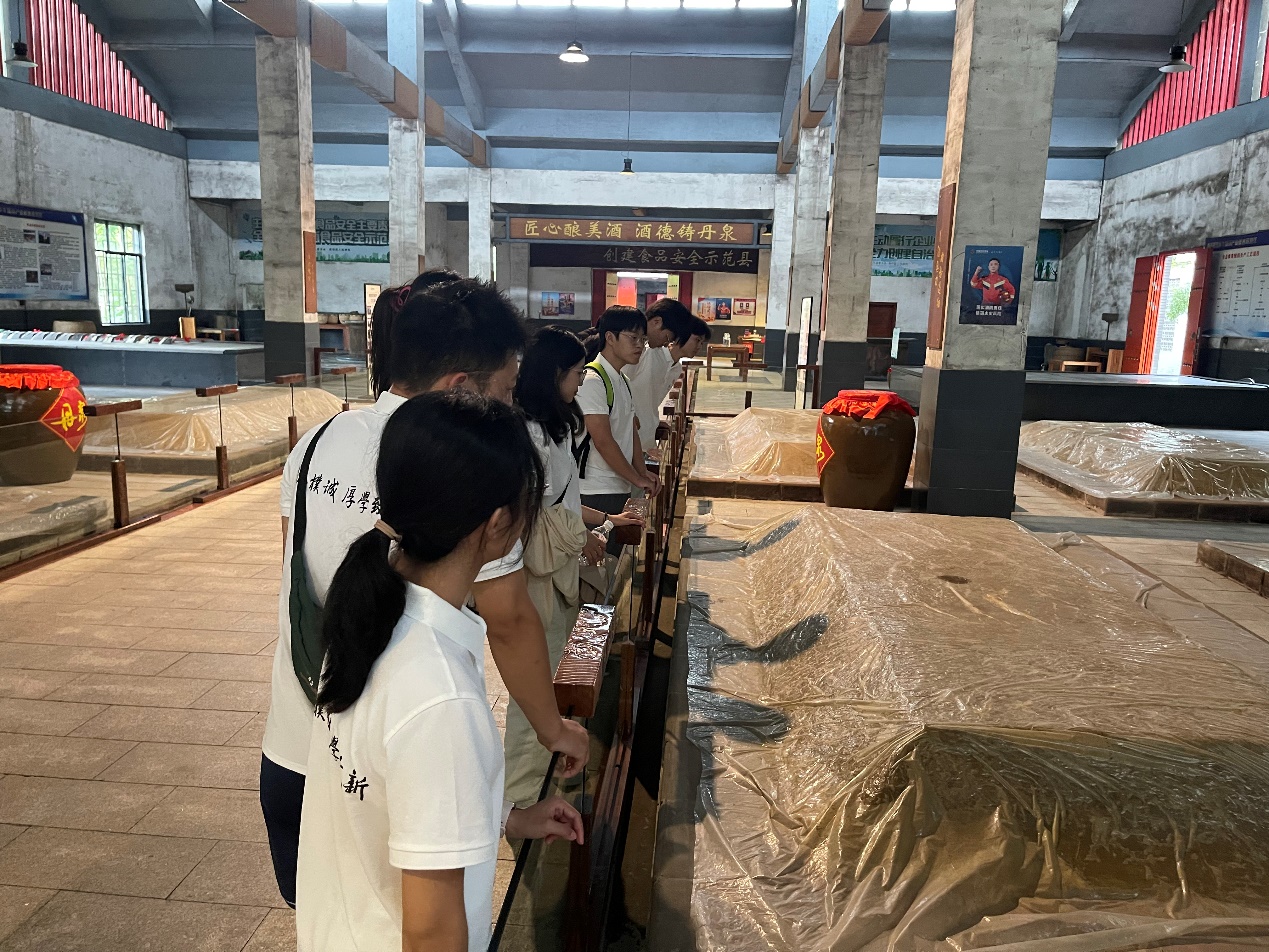 7月17日下午,实践团一行前往广西丹泉酒业进行参观调研,深入了解行业前沿和企业需求,促进产、学、研、用深度融合。实践团一行参观了丹泉酒业博物馆、酿造车间、洞藏基地等,了解到丹泉酒业是广西最大的优质白酒生产基地,酱酒产储量居全国前五,形成“产、研、销、旅”于一体的全产业链。带队老师与企业代表就酿酒工艺、发酵工艺、校企联合科研、产学研合作成果转化、人才共育、实习就业等问题进行了充分的沟通交流。学院将进一步加强与企业合作,借助企业资源优势,了解企业用人需求,提高人才培养质量,实现毕业生“选育送”共赢。