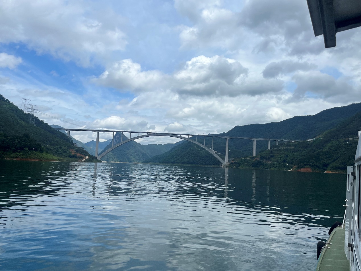 7月20日,实践团一行参观了由我校郑皆连院士主持修建的世界最大跨径拱桥——天峨龙滩特大桥。天峨龙滩特大桥全长2488.55米,跨径达到600米,创造了世界混凝土拱桥跨径的新纪录。该桥采用劲性骨架混凝土拱肋施工技术,钢结构总重达8202吨。天峨龙滩特大桥的建设标志着中国拱桥技术的发展进入一个新的里程碑,也为世界拱桥建设提供了新的思路和技术方案。通过实地参观,同学们对桥梁工程的建设过程有了更直观的了解,也为我国桥梁技术的快速发展感到自豪。大家纷纷表示,要把所学所感运用到今后的学习和工作中,为建设美丽中国贡献自己的一份力量。