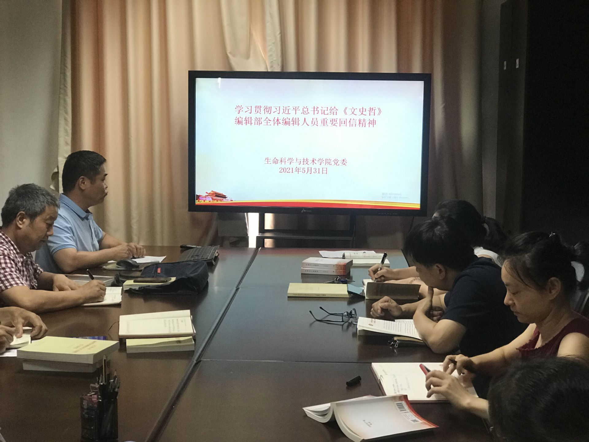 本次会议还同步学习了习近平给《文史哲》编辑部全体编辑人员回信重要精神、在中国科学院第二十次院士大会、中国工程院第十五次院士大会、中国科协第十次全国代表大会上的重要讲话精神。
