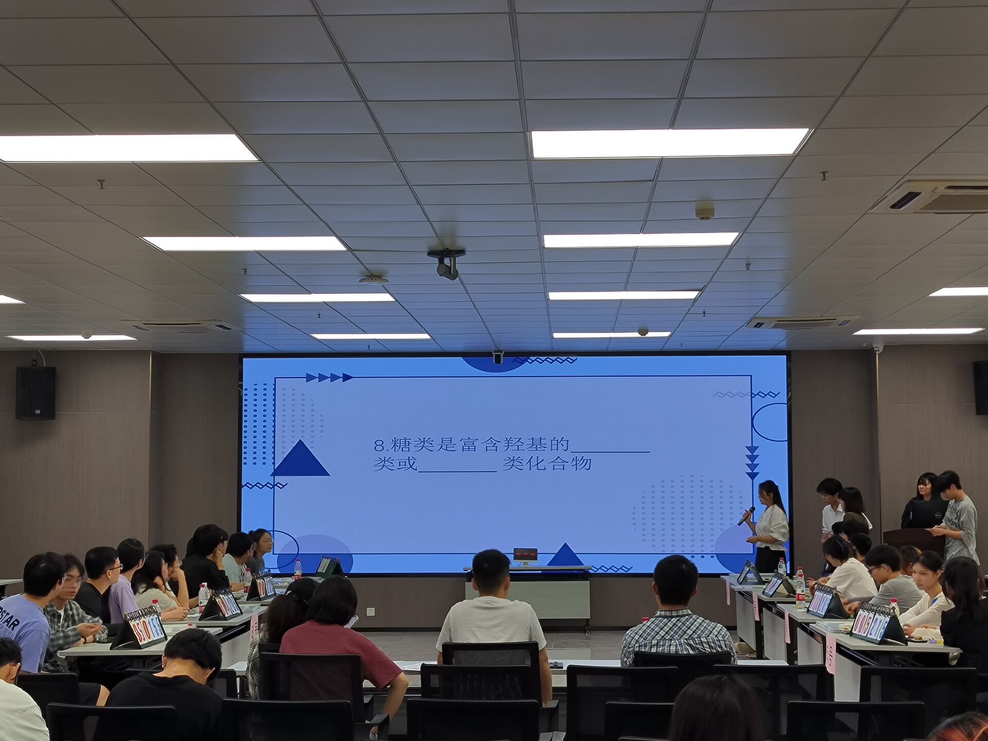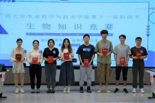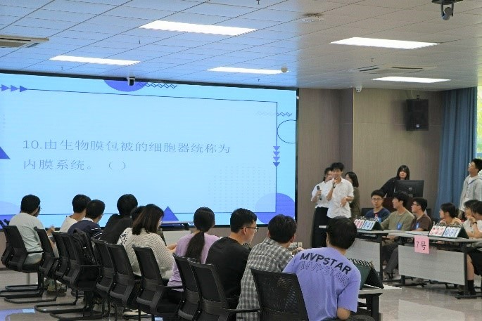 下午15点,我院在北107室举办了生物知识竞赛,该项赛事由“有问必答”“快速抢答”“勇者居上”三个环节组成。博士生周祖文、蒋煜和徐信栋担任本次比赛评委,一共有8组选手参加本次比赛。赛场上,专注的神情、激烈的抢答、流利的回答,充分展现了参赛选手对本次比赛的热情,也体现了选手们丰富的知识储备。最终第一组荣获本次生物知识竞赛第一名。