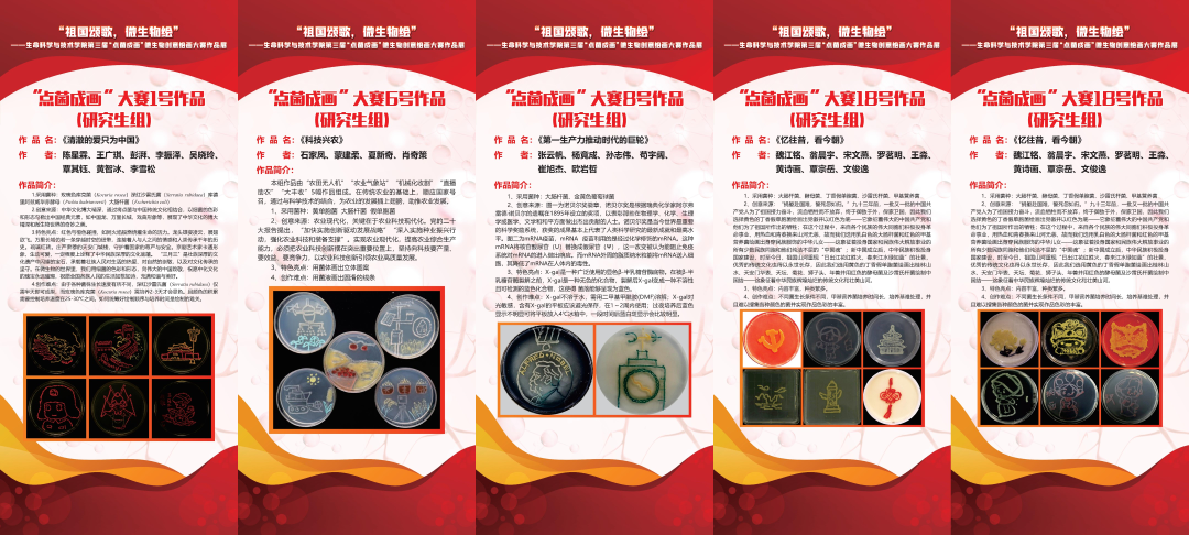 经评审,三组本科生作品、四组研究生作品获本次微生物创意绘画大赛一等奖。