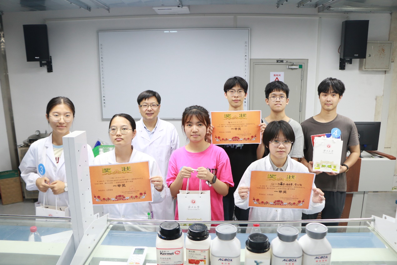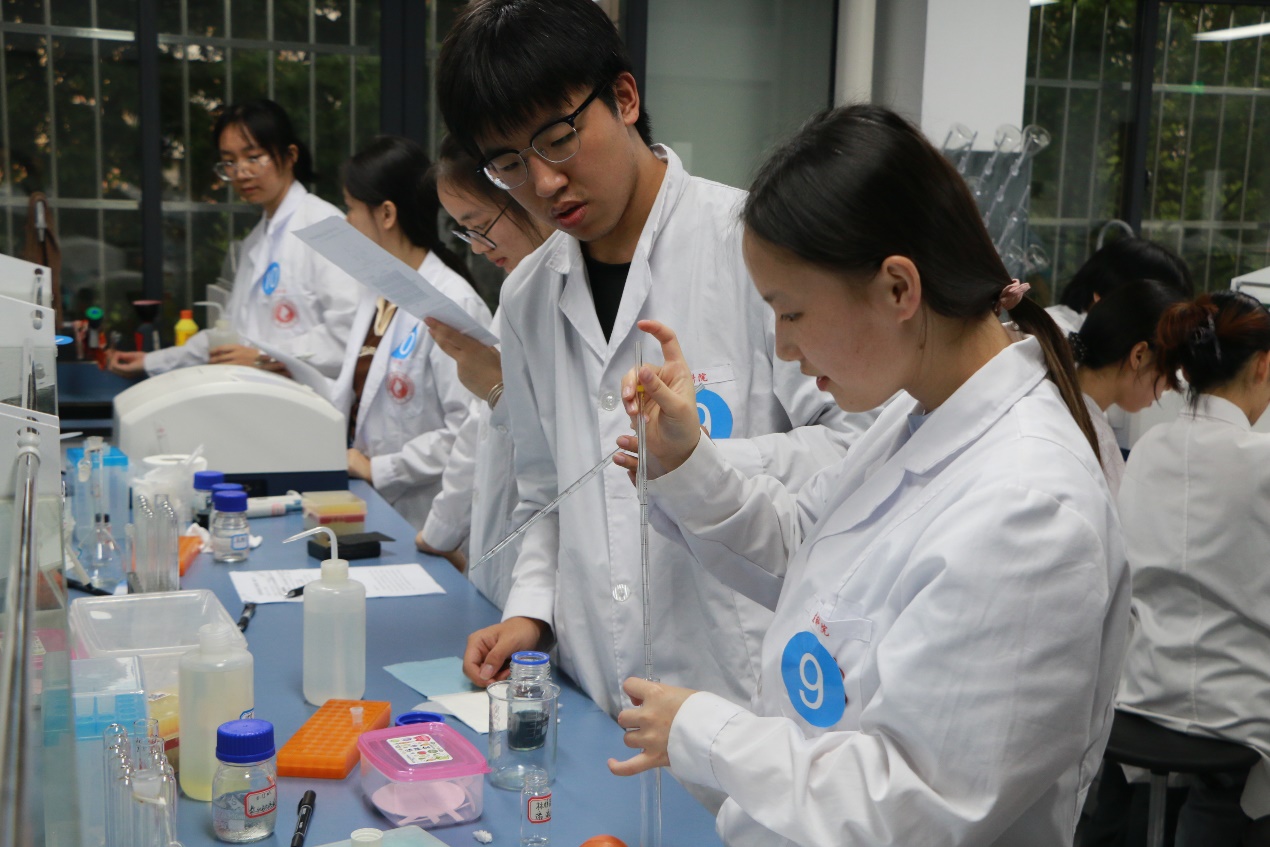 4月30日下午,本次科技学术节的子活动——实验技能大赛在学院实验中心408举行,副院长卢洁、实验中心主任莫祺红、生物技术系老师蔡文国、生物科学系老师莫棋文担任评委,共有11组队伍报名参加本次比赛。本次实验技能大赛由理论问答和实验操作两个环节组成。理论部分考察相关实验技术的原理与操作方法;实验部分是用考马斯亮蓝染色法测定蛋白质含量,考察同学们的科学思维能力、实验设计能力及动手操作能力。比赛过程中,各参赛队伍有条不紊进行实验,观察实验现象,分析实验结果,做到学以致用。是比赛,也是自我展示的舞台,更是提升自我能力的渠道。经过各位评委老师的现场评审,第十二组和第四组和第三组荣获本次比赛一等奖。