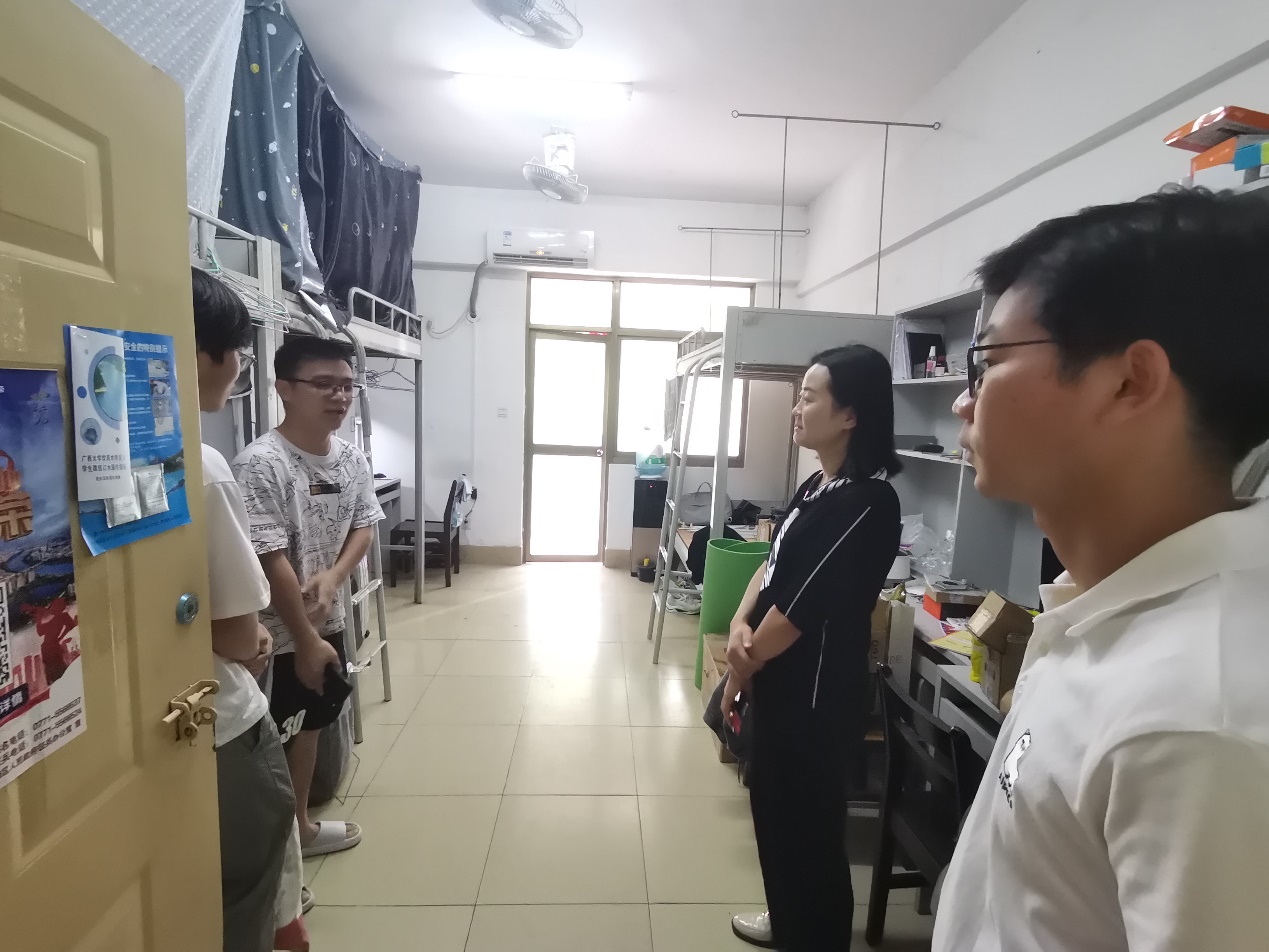 新学期伊始,为扎实做好2024年秋季学期的学生工作,8月25日上午,我院覃文月副书记和全体辅导员深入走访学生宿舍,详细了解学生的返校进程和思想、学习、生活情况,并对宿舍内务卫生、安全隐患等问题进行了排查。