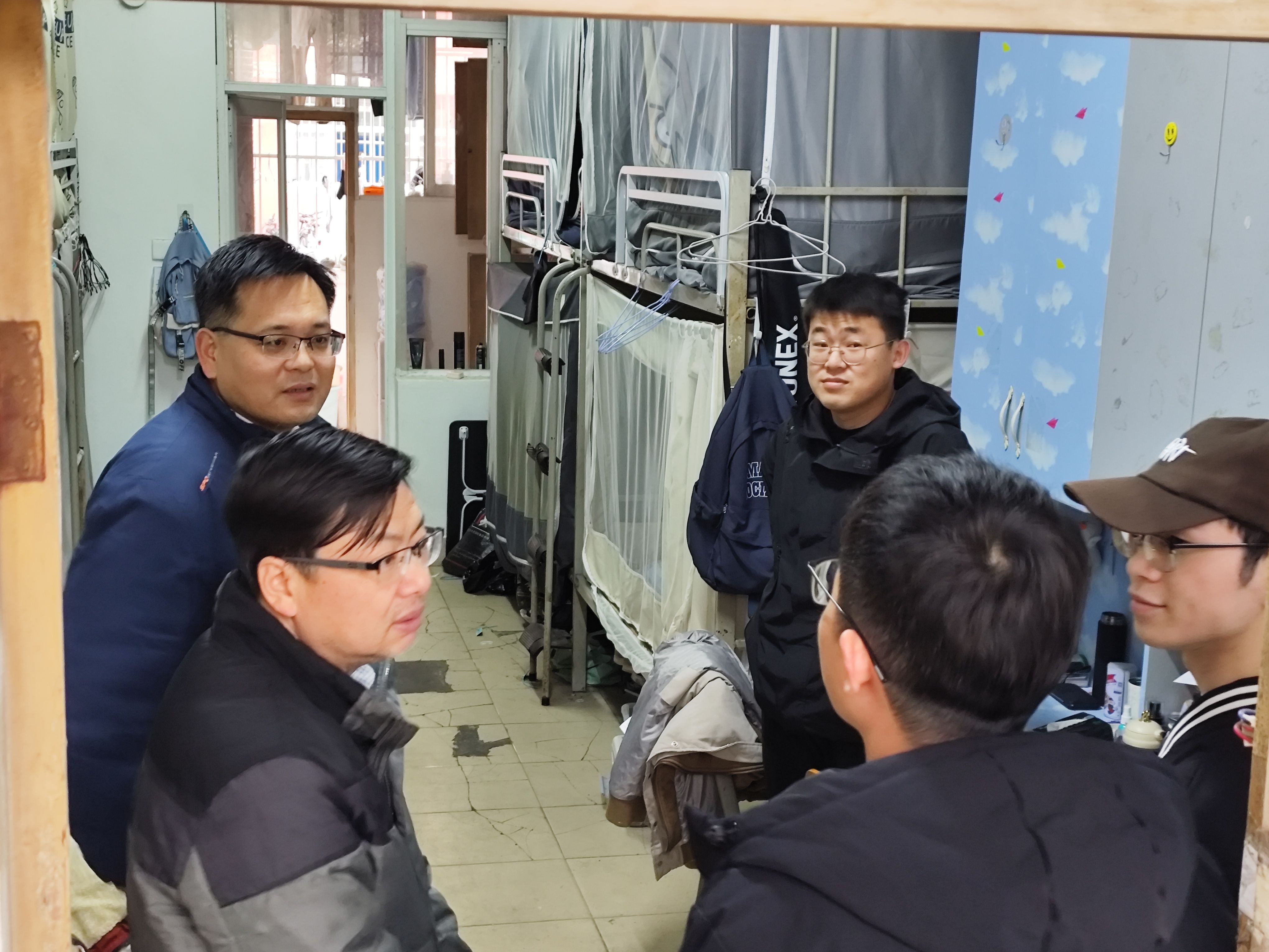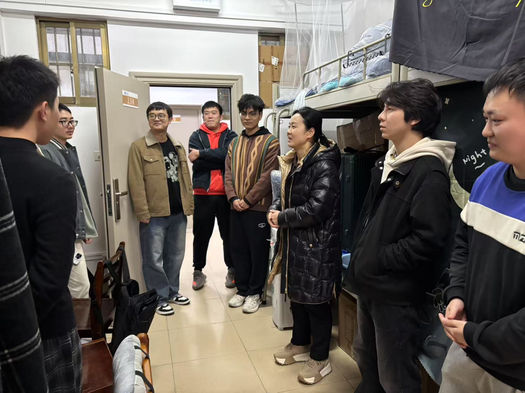 走访过程中,学院领导、老师和同学们展开了亲切交流,详细询问同学们的寒假社会实践收获、返校适应情况,倾听了解同学们的所思所想、所需所求,耐心解答他们在学习、科研、考研、就业等方面的困惑;鼓励同学们尽快调整好状态,合理规划新学期的学习生活,明确奋斗目标,积极参加科研训练和社会实践,不断提升自身的核心竞争力。同时,重点强调了安全问题,提醒同学们要增强安全防范意识,注意消防安全、用电安全、交通安全,警惕各类电信网络诈骗,保护好自己的人身财产安全。