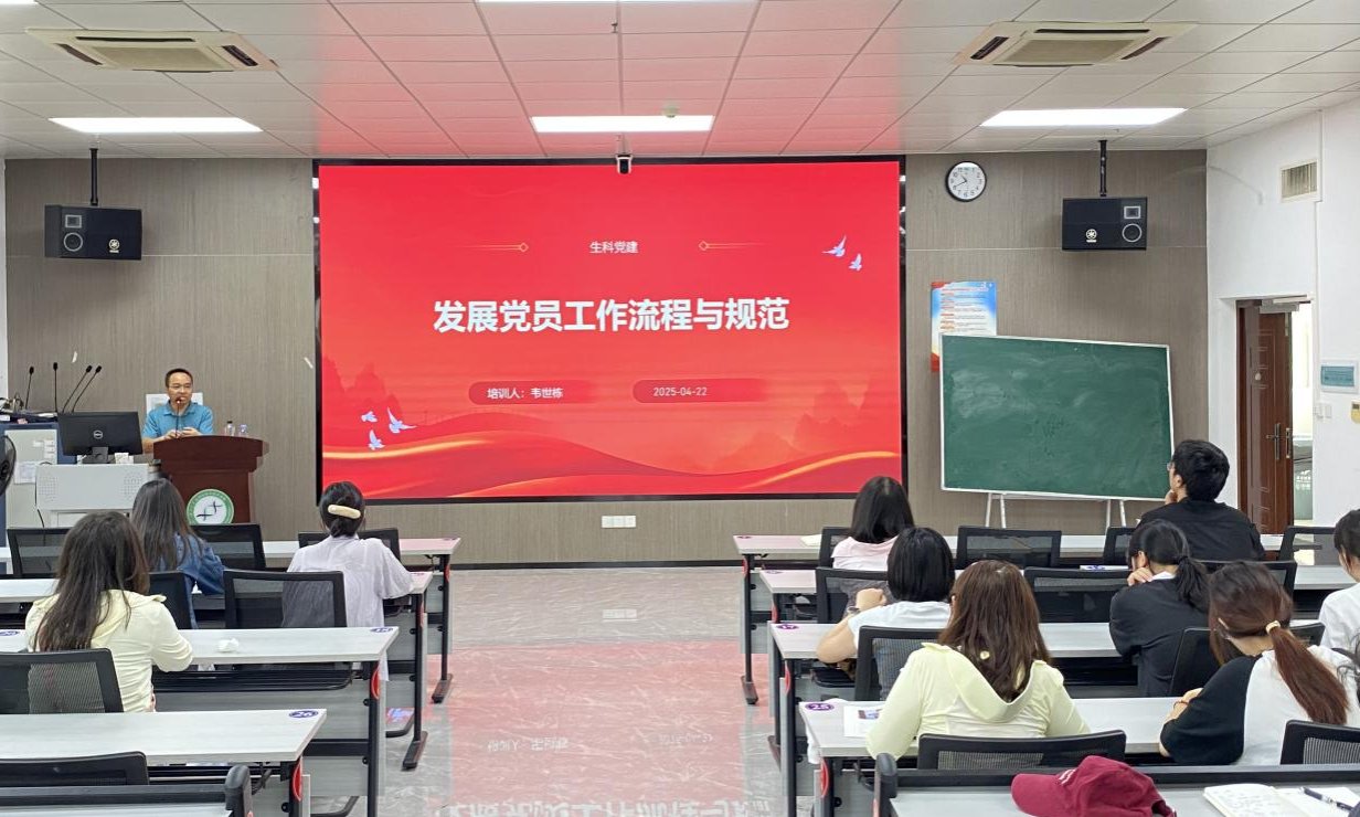 4月22日,韦世栋老师在《发展党员工作流程与规范》专题培训课上,系统地介绍了发展党员工作各个环节的工作流程、审查要点和注意事项,强调了档案管理与纪律监督的相关要求,有效解决了学生党支部在日常工作中存在的程序把握不准、标准理解不透等问题,为严把党员“入口关”、提升发展党员工作质量提供了有力指导。
