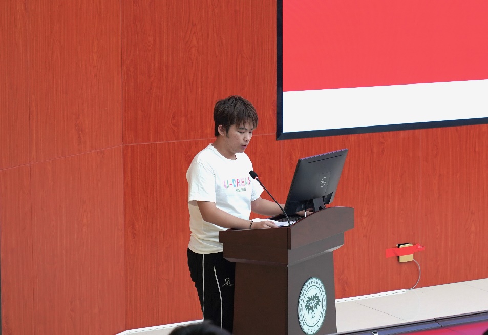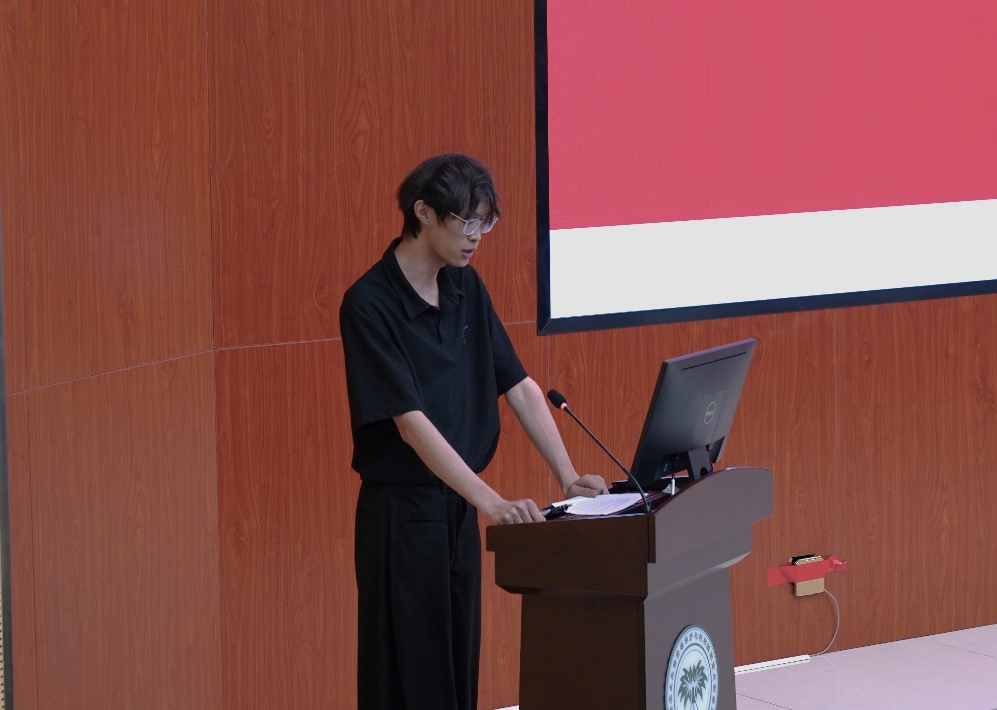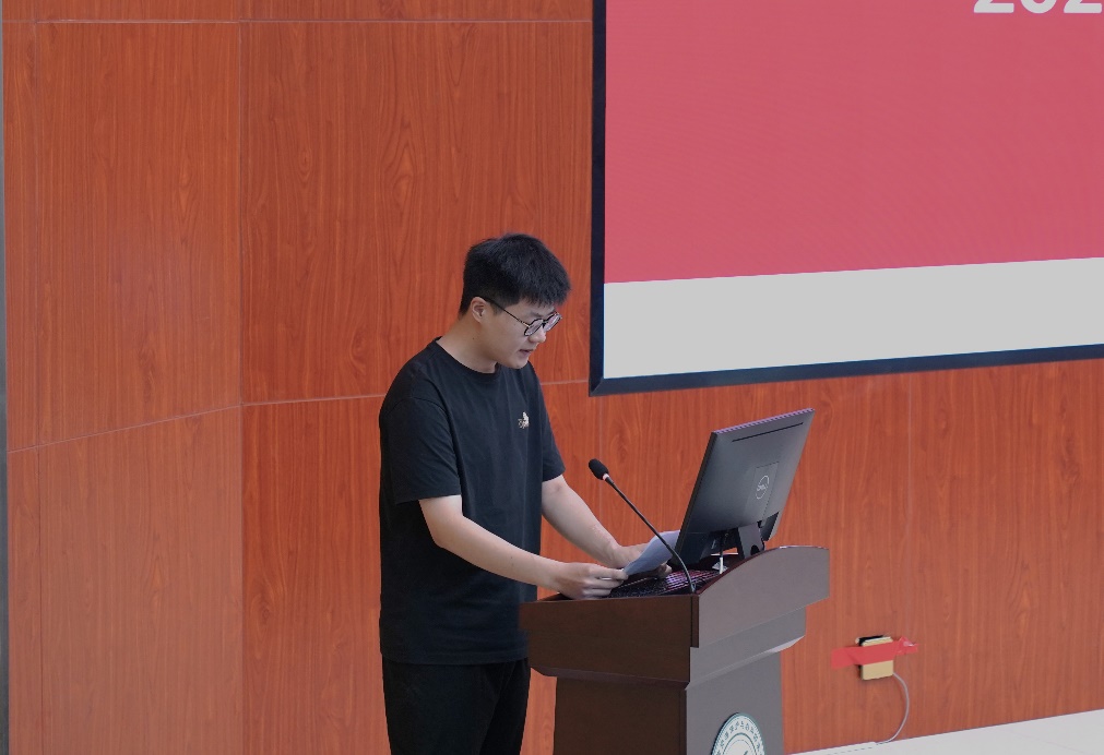 预备党员培训班学员代表秦嘉耀从“以学铸魂”、“以干践行”、“以创破局”三个方面讲述了青年党员如何锤炼实践本领,号召学员们将个人奋斗与国家现代化建设紧密结合,争当有理想、有本领、有担当的新时代好青年。